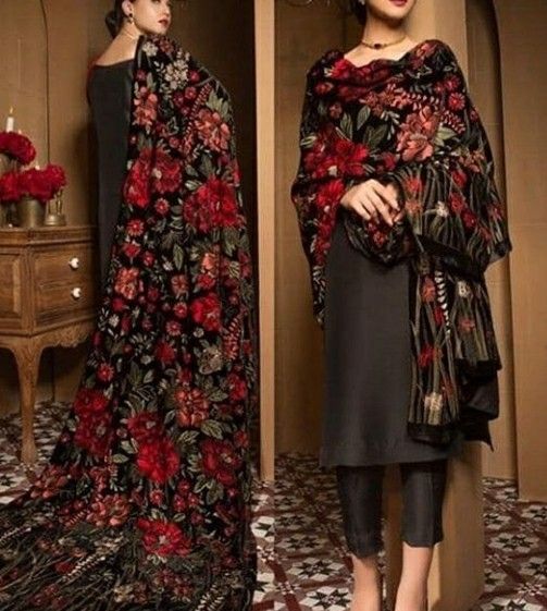 2. Velvet & Jacquard ShawlsVelvet shawls with embroidery and jacquard prints are trending for their luxurious feel and visual richness.